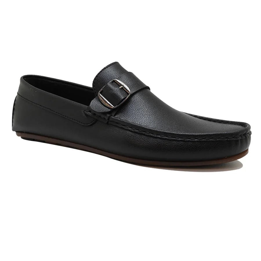 Men’s Black Leather Slip-On Loafers with Strap Detail