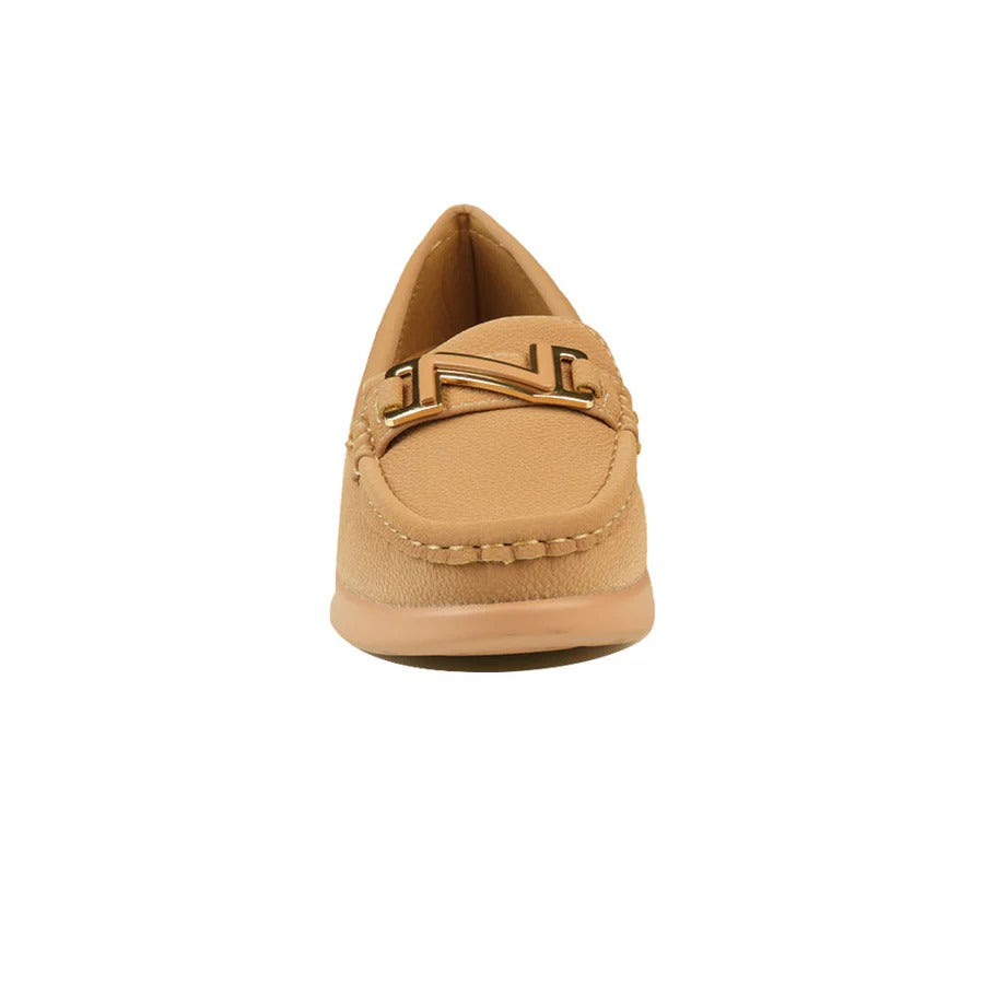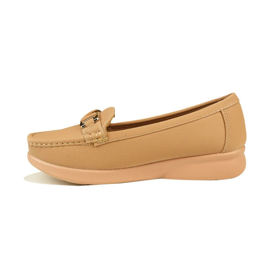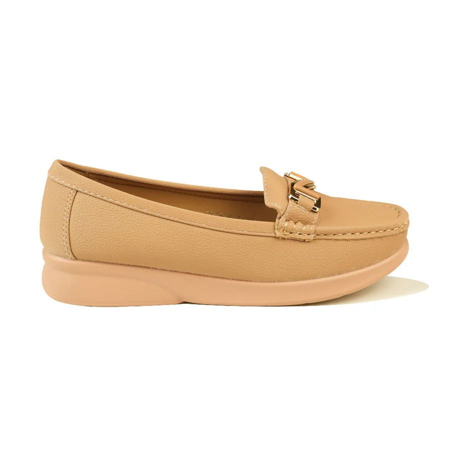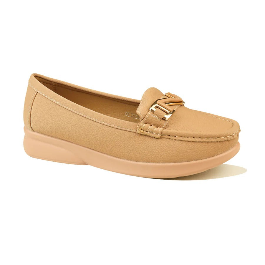 Women's Beige Comfort Loafers with Soft Sole and Gold Accent